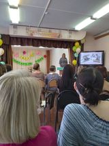 Конкурс проходил в 2 этапа. В первый день Надежда Геннадьевна провела открытое занятие и мастер- класс в детском саду с. Деревянное.В Заозерье в школе все участники конкурса представляли свою " Визитную карточку". Наш воспитатель в стихотворной форме рассказала о себе ( стихи были собственного сочинения) и рисовала песком, используя технологию пескография.